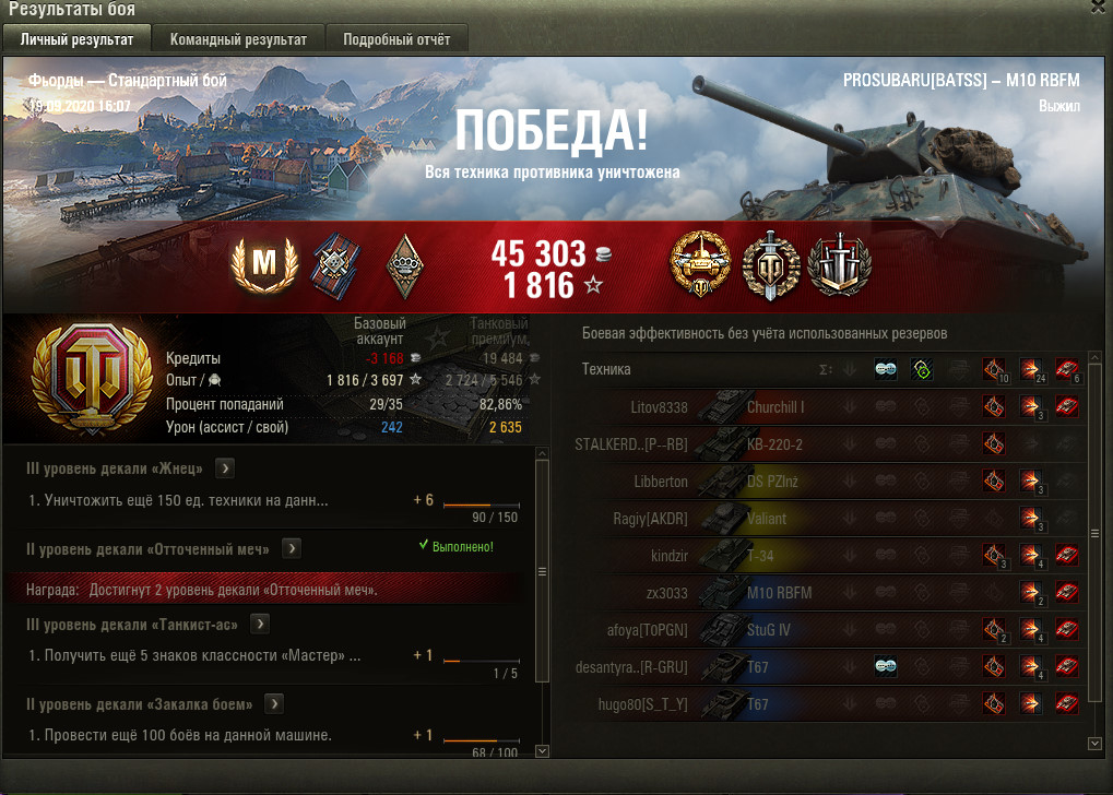 Приятно удивило то обстоятельство,что WG сделали акционную технику с хорошими ТТХ. Иногда кажется,что разработчики перед тем,как рисовать очередной специальный танк просто подбрасывают монетку. Если выпал "орёл" - характеристики техники делают вполне нормальными. Если выпадает "решка", тогда ТТХ нарочно ухудшают. Если изредка монетка установилась " на ребро", то рисуют имбалансную машину (Е-25). Видимо,в случае М10 RBFM игрокам повезло.