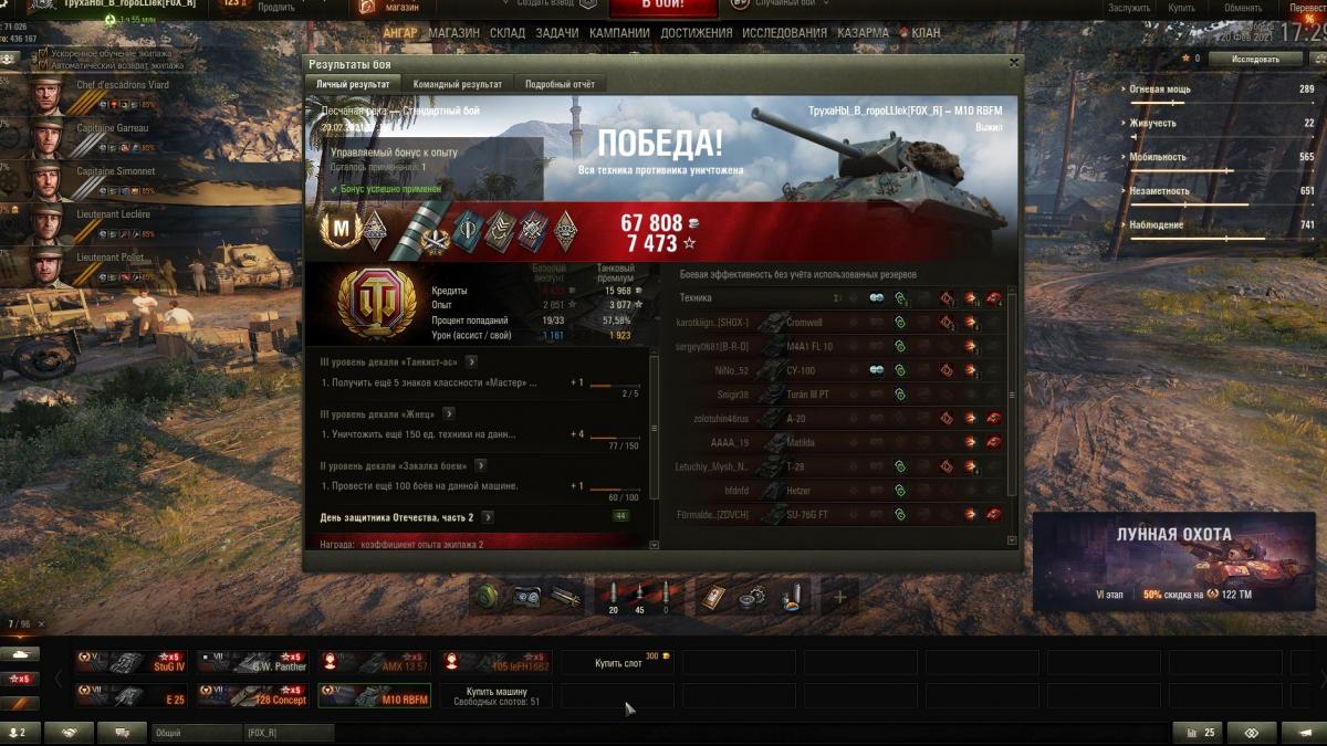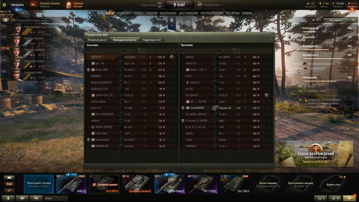 Я приветствую вас, господа и дамы. Катаю я значит рефералку и вижу в боях много М10 RBFM. Катал на ЛТ 4 уровня. Частенько меня эта ПТ из инвиза доставала. Решил попробовать на ней покатать и взять три отметки. В итоге взял три отметки за 110 боёв. Но хотел уложиться в 100...не получилось. За 110 боев удалось взять всего лишь 5 мастеров. Что интересно, так я долго не мог понять с каким сетапом оборудования мне будет комфортнее всего. Досылатель и просветленная оптика не обсуждались. Вопрос стоял в третьем слоте. Начал с малошумки, продолжил усиленными приводами наводки, усиленными механизмами поворота (отказался от них, поскольку корпус итак быстро крутится, а видимой прибавки к скорости вращения башни не ощутил). В итоге остановился на турбонагнетателе. Но скажу честно, что с малошумкой сборка также понравилась. По перкам, пропорции снарядов и снаряжению можно посмотреть на скрине ниже. Играл на ней скорее активно, чем нет. В кустах долго не стоял.