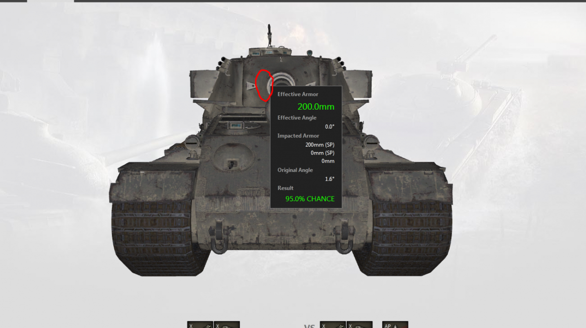 Не знаю, я б туда кумулями стрелять не стал, потому что не дай бог они стукнутся в орудие, они не пробьют. Простым ббшкам большинства тт и ст надо по идее попасть очень близко к пушке, чтобы гарантированно пробить, либо чуть левее по зоне до углублений слева и справа, тк там для них где-то 230 мм. По-моему, издали это нормально не выцеливается. Я так понимаю, в башку ему идеально зайдет только ббшная или подкалиберная голда.