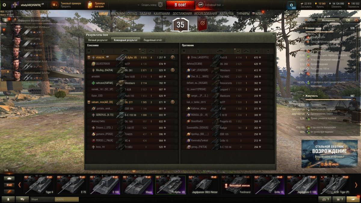 Есть у меня любимая машина Т95 - ЭТО ИМБА и на ней у меня одна отметка и из боя выхожу с минимум 2-мя фрагами! На ней надо всегда мансовать вперед-назад и НИКТО не пробъет почти никогда, а немца как не мансуй в НЛД пробивают ВСЕГДА!