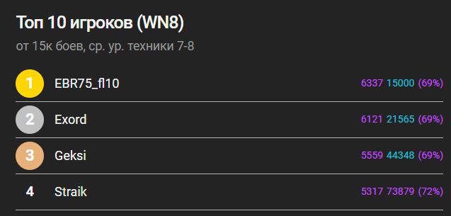 На победы даже смотреть не надо - 279 получает ЭЛИТА, которая умеет играть и играет отлично.