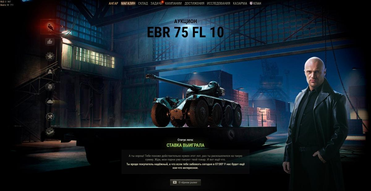 перестарался  со ставкой (18к) ) можно было на 5к меньше ставить ) сбило с толку очень маленькое кол-во танков  в  лоте. Жаль что не хватает радиста в экипаже елц евен 90 - пришлось потратить одну девушку ) хотя  осталось  ещё 14 нерекрутированых бойцов с  перками ) Сложно привыкнуть к  смене режимов. Очень повеселила одинаковая езда вперёд и назад ) И вообще интересная  машинка - новый  опыт так  сказать. Кстати по первым  впечатлениям фугасы не очень - лучше с  норм  пробоем  играть