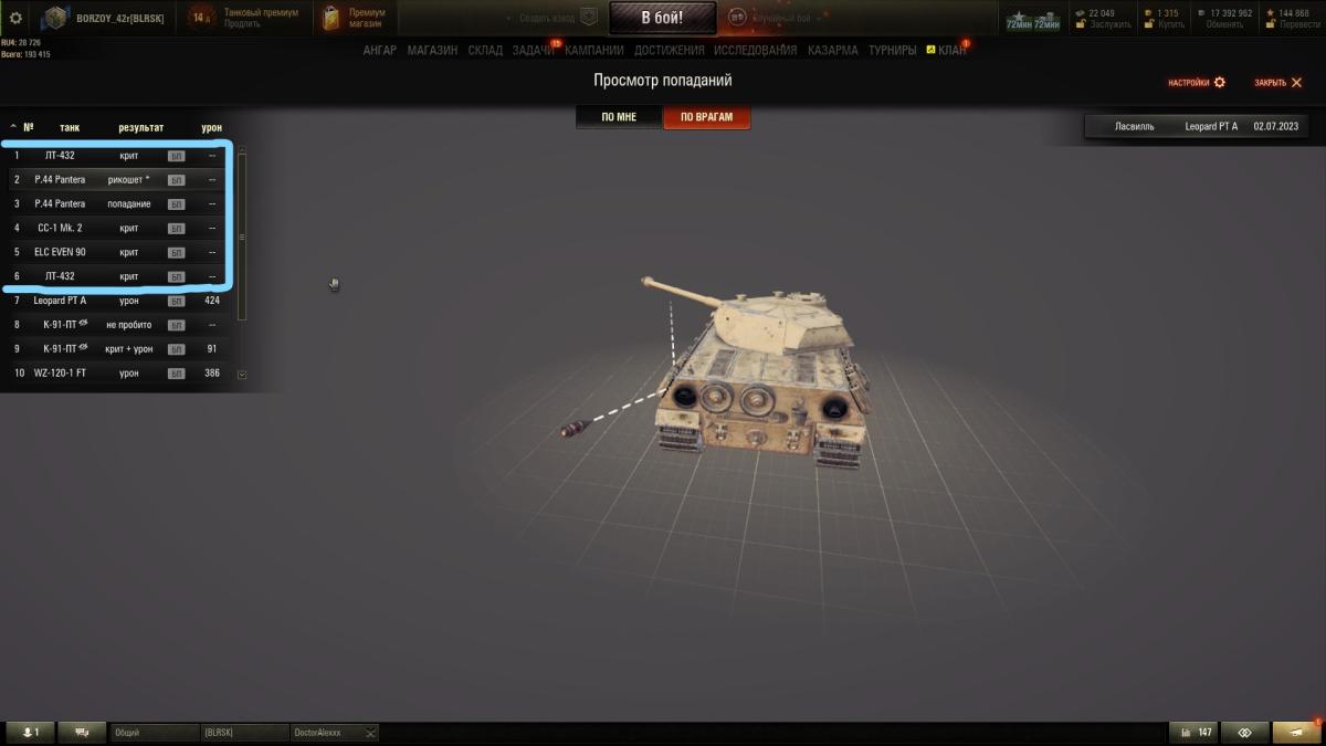 Точность чудесная, а пульки на всех танках иногда рикошетят) 3к среднего и 65% побед в любом случае только на лео9 получилось настрелять, остальные СТ и рядом не валялись