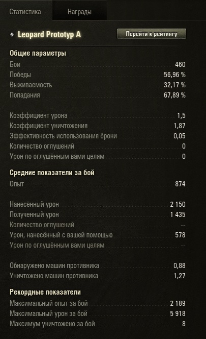 Пы.Сы. Я средний игрок. Честный "рыжий". Но на этом танке у меня статистика много выше чем по акку.
