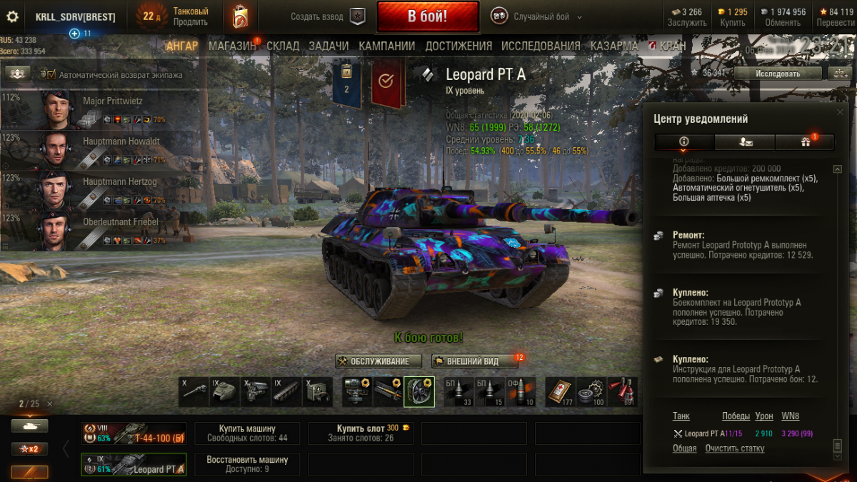 Попробовал честно без доната и свободки, с обученным за кредиты экипажем исследовать хотя бы один модуль. Обычно так делал всегда на протяжении всего времени, за искл. танков 1-5 лвл. Поставил часовые резервы на экипаж. Вот, что получилось. Короче говоря танк в стоке тихий ужас. Пушка вроде как с дмп, но 250 на 9 лвл сами понимаете. Но самый ахтунг это подвижность. В степях не смог нормально заехать на горку, куда обычно арта катит (сток двигатель уг). Короче не так давно выводил в топ шкоду и стандарт, там не так больно было. Советую беречь нервы.