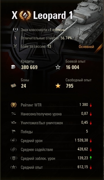 Раньше был самый любимый танк. Потом его ВГ убил. И вот недавно (ранее я уже писал) я вновь взял этот танк. Очень порадовался практически шикарной стабилизации. Очень многого стоит быстро выскочить, выстрел и спрятаться. Но и правда на этом пока все. Маскировки нет, динамика из разряда кое как. Пробитие и тут веселье поджидало. Разницы нет что спец снаряды, что обычные толстые шкуры не берут. Уязвимые места из за тухленькой динамики и отсутствии маскировки выцеливать возможности нет (ТТ меня светил, с учётом того, что я очень на отдалении был). Соглашусь с правилом "если леопард засветился, то что то ты делаешь не так"! Но вот не задача-на десятом уровне у всех экипажи уже прокаченные на обзор и к тому же со всякими плюшками на дополнении. Соответственно - завет-все сразу в тебя!!! Теперь очередной "прикол"!!! На 10 м уровне по две три арты и по два колесника в команде!!!! Это что за прикол ВБР???? Да. Лео может выбивать колеса и выбивает, но в основном в упор. На дальние дистанции у нас не хватает стабилизации, точности пушки (много в небо и землю уходило, хотя очевидное попадание должно было быть). И упираясь на колеса, мы светимся и тут сразу выбор-либо гоняться за колёсам у всех в фокусе, но динамики то нема плюс картон или как уж на сковородке после завета колеса, от арты противника или ПТ извиваться. Какой то он полукалека. Хоть маскировка ещё дали бы. Да. И маскировка и бб и все у меня вкачено. В итоге! Да я люблю леопард 1. Продавать его не буду. Но и прям рубить я на нем тоже. Все же подумал доказать итальяшек, все ж иметь четыре выстрела вместо одного надёжнее, да и бронька какая никакая есть. Стрелял с леопарда и два раза не пробил-рикошет. А! Ещё прикол на нем были и есть-снаряды сквозь танк противника без урона пролетают!!!