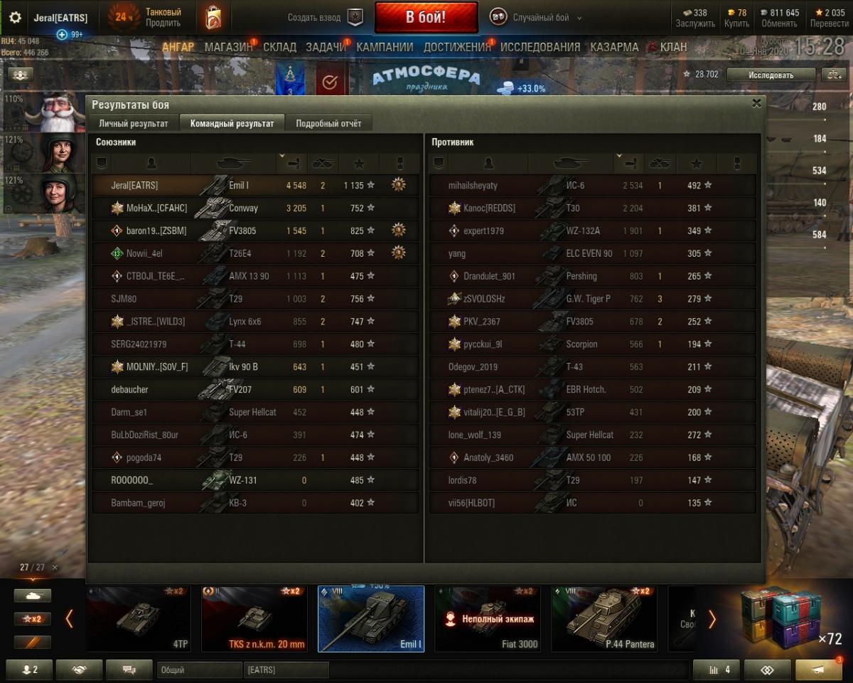 танк ужасен. 20% побед на нём. не выносимо играть, арта быстрее сводится чем этот эмиль. мне кажется его может е100 обогнать. для чего нарисовали эту цуфру 50 км/ч если максимум 35 по асфальту. точности никакой, сведения никакого, мобильности ваще нет. что вы апали тогда разрабы?. вы только уменьшили перезарядку барабана и всё, а главная проблема то в мобильности и в орудии. лучше бы старый оставили емиля. не апп, а нерф.