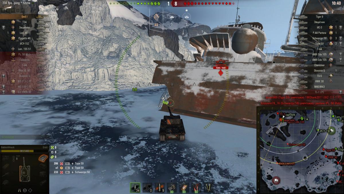 Emil I создан сугубо для одноуровневых боев. Вот здесь он чувствует себя как рыба в воде. И пробить можно, и даже танконуть порой. Не всё, правда - голда и птшки не в курсе, что мы должны что-то отбивать. Но в целом - терпимо. Да, медленный, да, косой до жути, но напихать 1100 урона за 6 секунд все равно приятно.