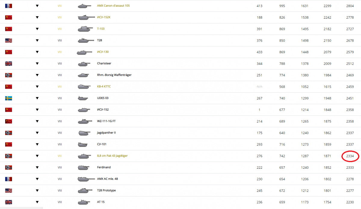 Так а кто просел сильнее? Конкретно, кто? Вот суммарка на 3 отметки среди всех ПТ-8. Яга в числе самых слабых. И это притом, что у неё готовая комплектация, а все эти Фердинанды, СУ-101, Прототипы и АТ15-е надо ещё выкачать в топ. То есть, по факту, это худшая ПТ-8. Давайте не будем друг друга обманывать. Яга-88 - худшая ПТ-8 по боевой эффективности, если брать все машины в топовой комплектации. Не вводите игроков в заблуждение. Скрин привёл. Да даже АТ15А, пусть она просела где-то на 100 единиц средухи за 2-3 года, всё равно на свой уровень намного сильнее, чем Яга на свой.