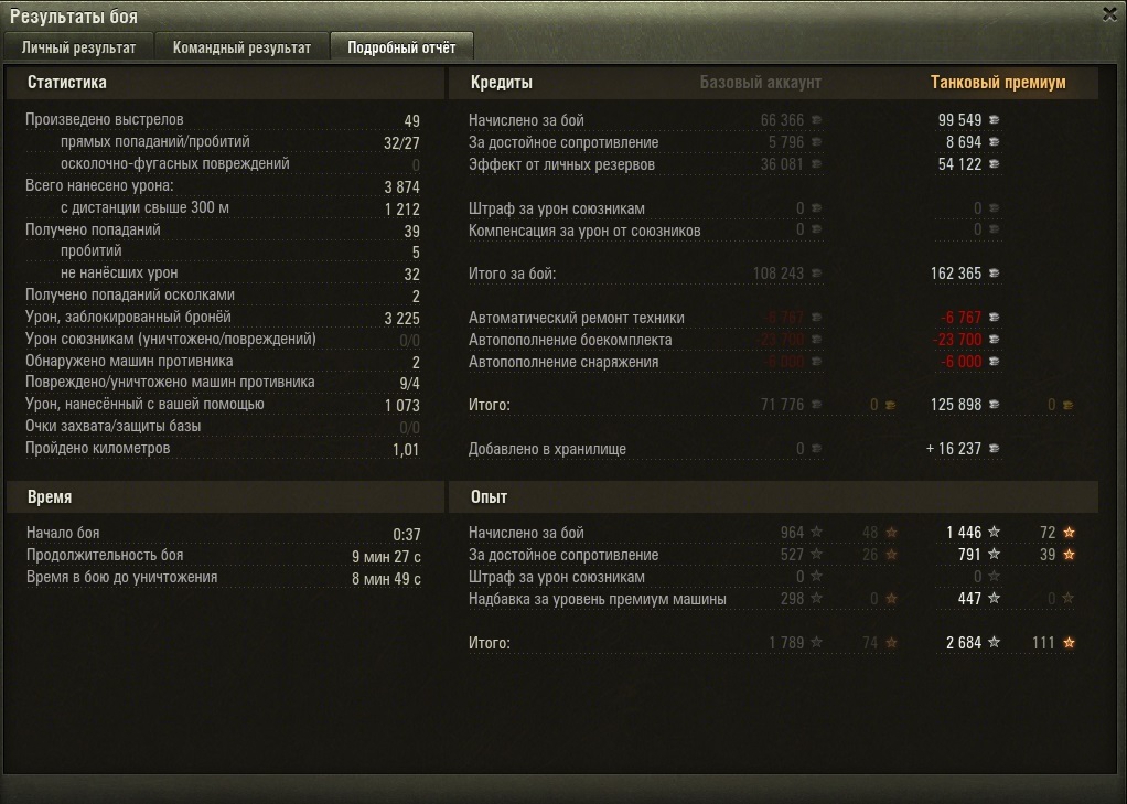 Чуть подсказать ЦА и они смогут также. Это был мой худший бой за ту вечернюю сессию. Так я катал на 1к среднего с соответствующих ассистом при среднем времени боя в ~3 минуты. Да, время боя -- не ошибка, я так все бои фармлю (иногда могу отходить как здесь, тут уж кто куда это время плюсует), это делается целенаправленно из-за механики фарма. x2 от стандартного среднего времени боя. ;-) За 3 с небольшим часа накатал 49 боев.