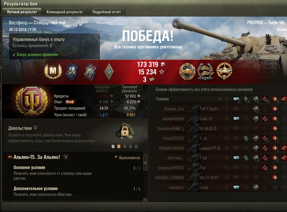 З.Ы. А еще на этом тунке выполняется ЛБЗ Альянс - 12 на танкование на 279