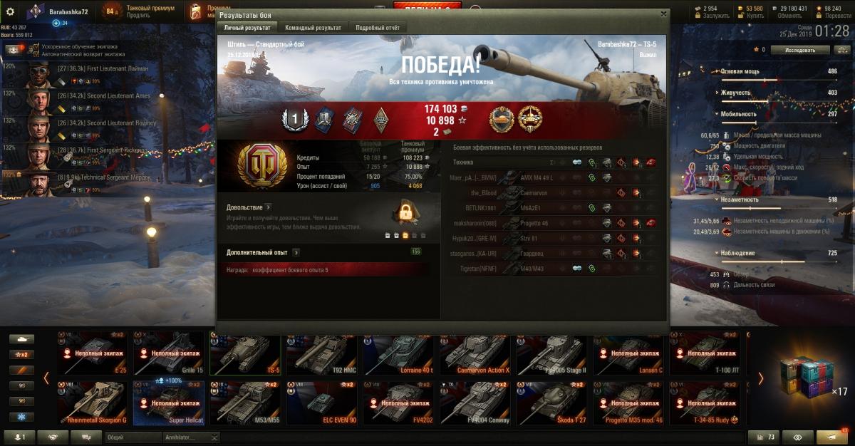 Кстати насчет косости ствола. Не могу сказать что откровенный кактус. С 0.4 катал на батоне 46. Да и в принципе у амеров нет точных стволов. Зато у них стабилизация самая лучшая из всех. Про стабилизацию на ней пока не понял, но дпм неплох. До не такая уж она неподвижная,  свои 25 набирает норм, да и не сильно их теряет. В общем, надо покатать, посмотреть и вполне возможно наконец добить ветку е3.  Изменено пользователем St_Bezdelnik