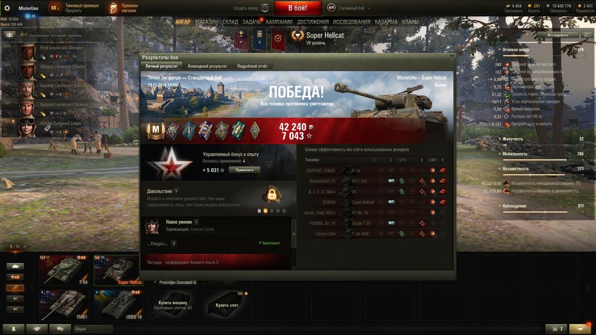 Фееричная х р е н ь, новая худшая ПТ-7. Единственное что радует - динамика. Точности нет, пробоя нет, ДПМа нет, альфы нет, премстатуса нет. С тем великолепным Hellcat`ом, который я помню и на котором я отыграл не одну сотню боев - вообще ничего общего. Раньше я считал, что ничего хуже Т25/2 на 7 уровне в принципе вообразить нельзя - но нет! Наш гениальный отдел баланса превзошел себя! Господа разрабы, мне кто-нибудь пояснит, что это за магия такая? Как это так? Одни и те же снаряды одного и того же орудия одной и той машины на разных уровнях имеет РАЗНОЕ пробитие!?  Это вообще какой сверхразум придумал!? Взять и так не сильно имбовый танк 6 уровня, отпилить у него пробоя... и засунуть на уровень выше. Браво!