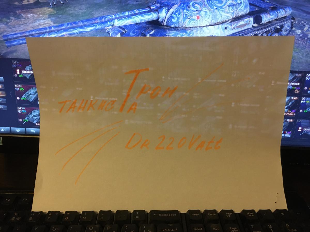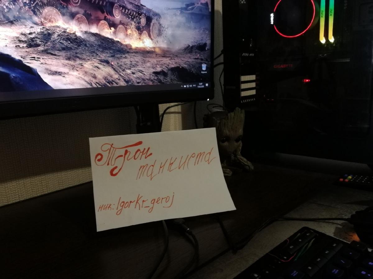 artiee Опубликовано: 12 февраля, 2020 Игроки 1 публикация 45 826 боёв Поделиться Опубликовано: 12 февраля, 2020 (изменено) http://cdn-frm-eu.wargaming.net/wot/ru/uploads/monthly_02_2020/post-15955506-0-31096200-1581533479_thumb.jpgрабочее местоhttp://cdn-frm-eu.wargaming.net/wot/ru/uploads/monthly_02_2020/post-15955506-0-33242300-1581533505_thumb.jpgмкоhttp://cdn-frm-eu.wargaming.net/wot/ru/uploads/monthly_02_2020/post-15955506-0-02811300-1581533510_thumb.jpgтрон танкистаhttp://cdn-frm-eu.wargaming.net/wot/ru/uploads/monthly_02_2020/post-15955506-0-65865700-1581533524_thumb.jpgигровое имя artiee Изменено 12 февраля, 2020 пользователем artiee Ссылка на комментарий Поделиться на других сайтах Другие способы поделиться...