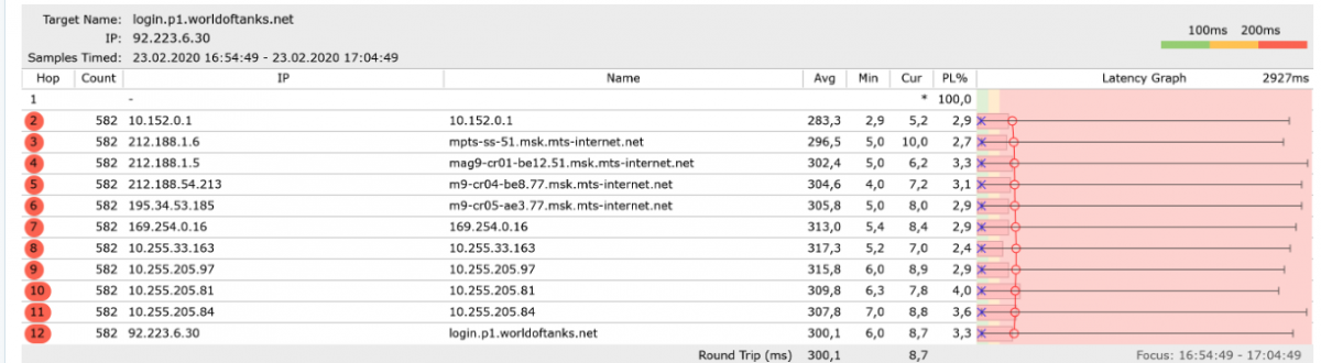Глобальные модераторы ZloyBut Опубликовано: 23 февраля, 2020 Глобальные модераторы 48 499 публикаций 45 510 боёв Глобальные модераторы Поделиться Опубликовано: 23 февраля, 2020 (изменено) http://cdn-frm-eu.wargaming.net/4.5/style_images/wg/snapback.pngkareliy76 (23 фев 2020 - 18:11) писал:Рано радовался) https://share.pingplotter.com/f3YrtgtZLMz в бою пинг скачет просто ужасно только я сколько не читал так и не понял как понять у меня это проблемы или нетУ вас. Точнее - на оптическом медиаконвертере, который установлен у вас дома, но им управляет провайдер.Вот смотрите на графике - со второго узла начинаются дикие просадки Пинга и Потери пакетов, которые отражаются на всю трассу. Это говорит о том, что скорее всего неисправен этот самый медиаконвертер.Вам надо создать заявку в Поддержку провайдера и добиться вызова их специалиста - он должен проверить кабели, которые приходят к вам.К Заявке надо приложить скрин отчета Пинплоттера - можете воспользоваться вот этим. Сохраните его на диск и затем переправьте провайдеру. Когда провайдер что-то сделает - создайте новый отчет и приложите в ответ. У вас есть 72 часа в этой теме. Ответа на последовало. Видимо проблема решилась. Тема закрыта. Изменено 27 февраля, 2020 пользователем ZloyBut Spoiler Ссылка на комментарий