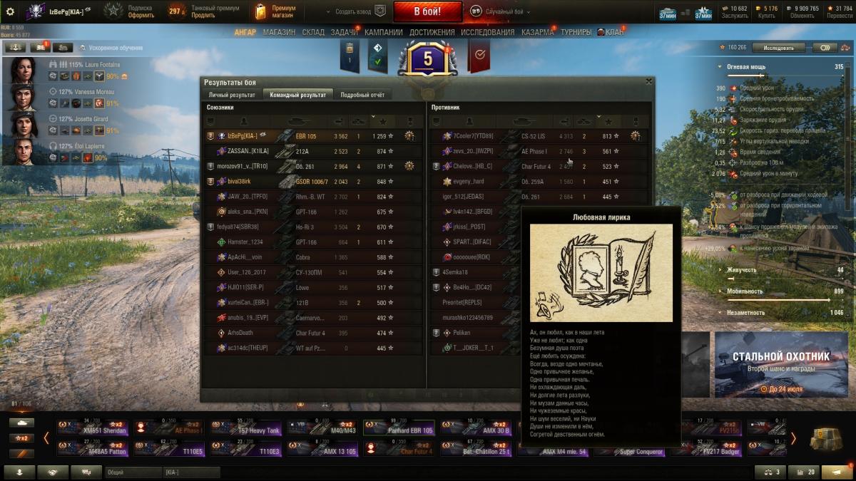 (Ведь собрать метрики по удержанию в засвете и по времени обнаружения EBR 105 до взаимозасвета сложно, это надо думать,а не-не-не, делаем бизнес, а не игры. )