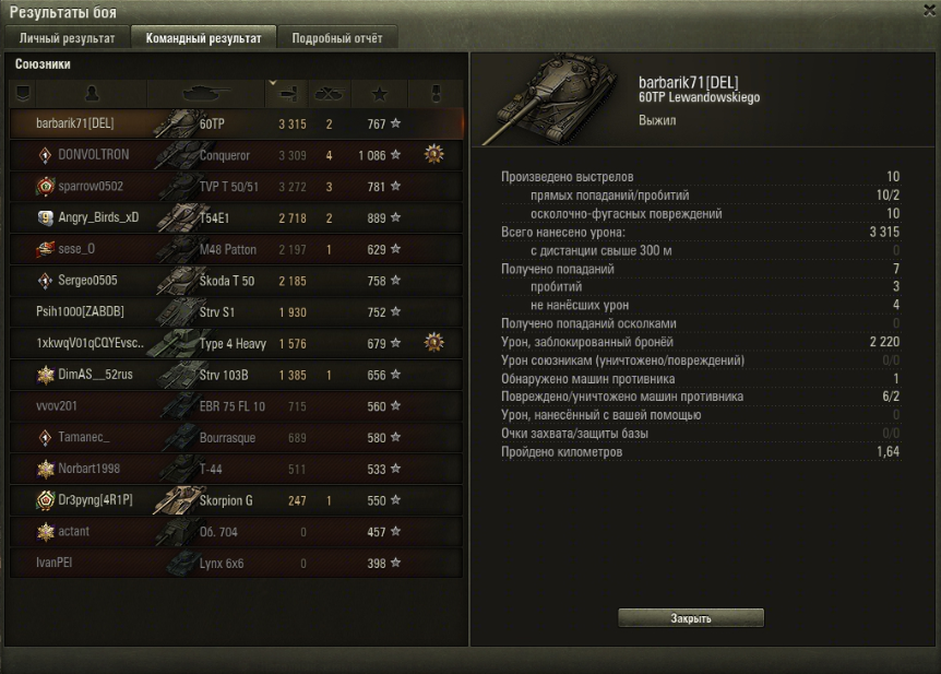 А тебе не кажется, что тот, кто приносит пользу для команды в большей части тех боев, которых я сыграл на Шестидесятом - это и есть я