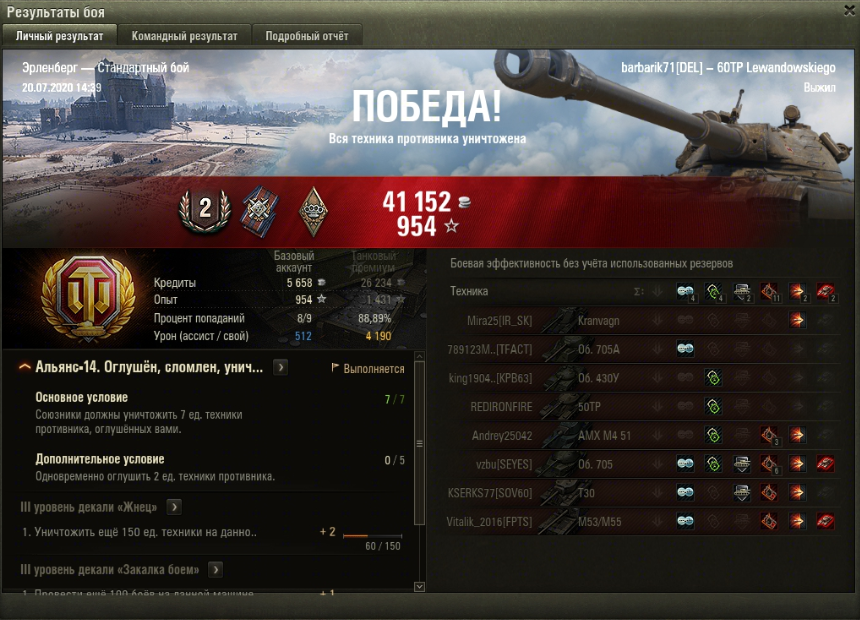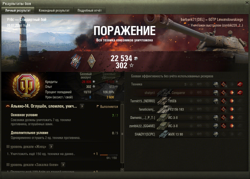 Кстати.. А ты, "нагибатор", покажи скрины результатов своих боев..
