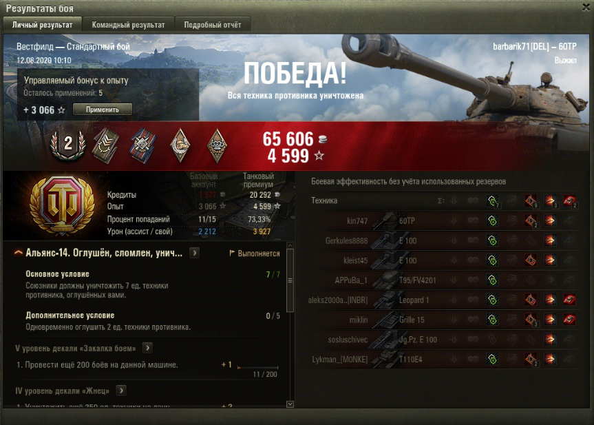 Вообщем на 60тп установил на танк установил фулл боновое оборудку( вентилятор,стабилизатор,досылатель). Средуху держу в 3300. Всем советую танк, учитесь играть от рельефа, комбинировать снаряды. Всем удачи в БОЯХ и хорошего нагиба!