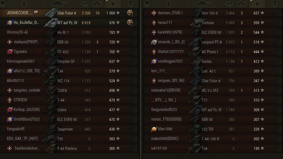 Все днища его уже давно взяли. Когда я брал отметки, он был среди ст девяток на 4 месте. Да и сейчас он там же, ведь в 70 единиц урона разницы укладываются сразу несколько его соседей по таблице. Футуров в боях по две-три с каждой стороны, а отметки так и не меняются.