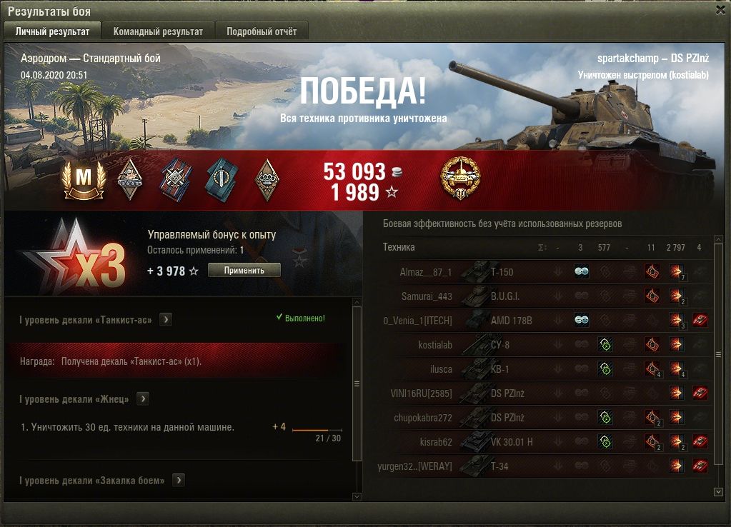 Da3DpanepMa Опубликовано: 5 августа, 2020 Игроки 8 833 публикации 51 209 боёв Жалоба Поделиться Опубликовано: 5 августа, 2020 Не понятно зачем он нужен если есть 25ТП. Те же яйца только в профиль.Кстати с 6ркой та же история -если катать 90мм то по сути клон 40ТП.Чего ради нужно было городить ветку с неиграбильного 4го уровня если все равно 5 и 6той уровни клоны имеющихся СТ. Если уж хотели делать длинную ветку, то нужно было ТТ делать на 5тый и 6той уровни а имевшиеся СТ перенести в ветку СТ.А по танку... Не особо радуют стабилизация, сведение, динамика, обзор, ДПМ. Тем не менее танк вполне себе комфортный - хорошие бронепробитие, альфа, УВН. Мне и 25ТП зашел и этот похож. Ссылка на комментарий Поделиться на других сайтах Другие способы поделиться...