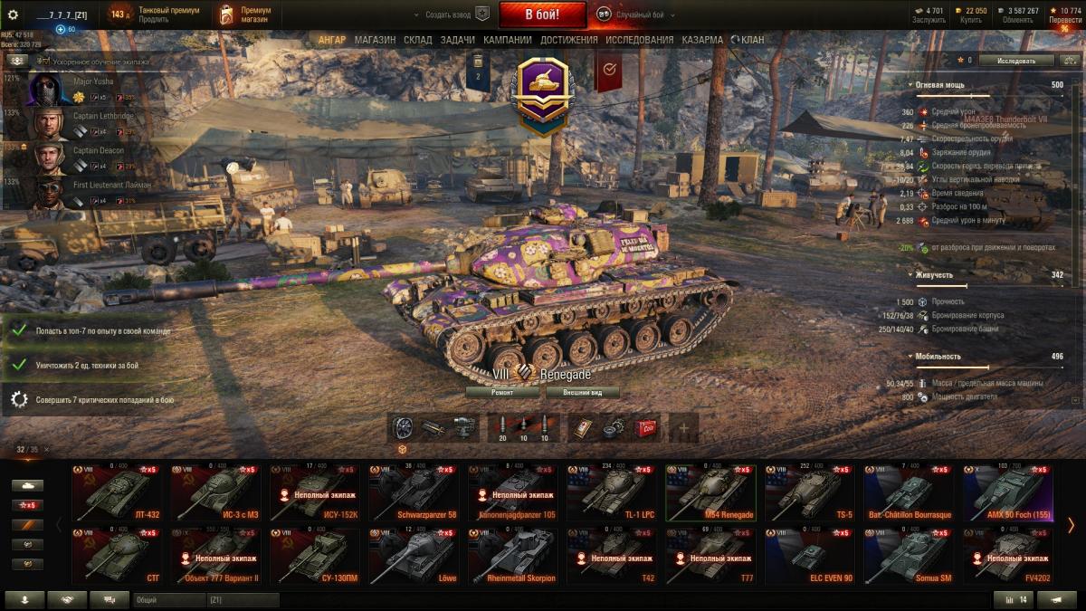 Взял набор от твича и черт дернул меня выбрать ренегата. Это самый худший танк в игре, ему место на 6 -7 уровне. Картонный  с огромным ведром на башне , которое пробивают лт 6 уровня ббшками, неповоротливый, косой до одури хуже ис3.