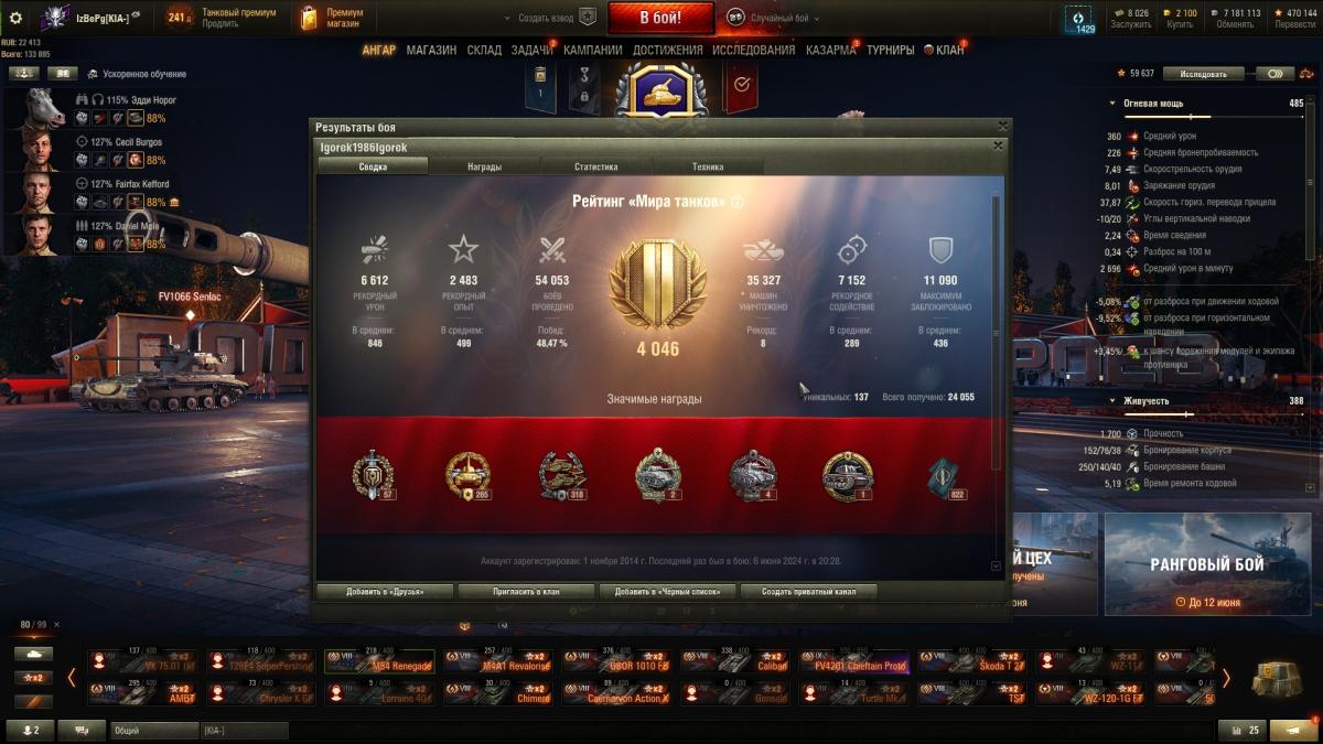 Толку мне от побед если я сам ничего не настрелял? На остальных танках +- всё нормально, но на ренегаде с каждым днём всё меньше и меньше настреливаю, при том что он единственный который с боновым/трофейным оборудованием (их тех что на скрине). Просто проклятый у меня танк, меня все пробивают на полном ходу, а я с полным сведением делаю "не попал в броню"