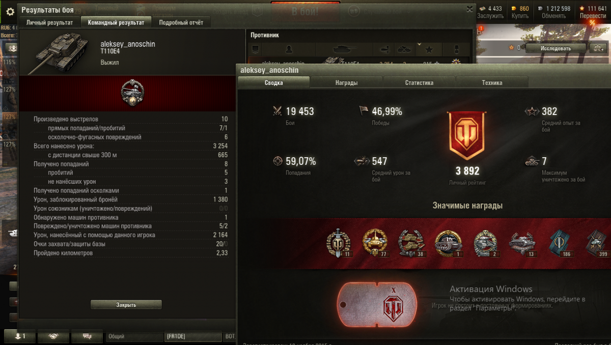 мало того сконцентрировавшись получил еще больше и довел средний дамаг до 2997 по результатам 10 боев.