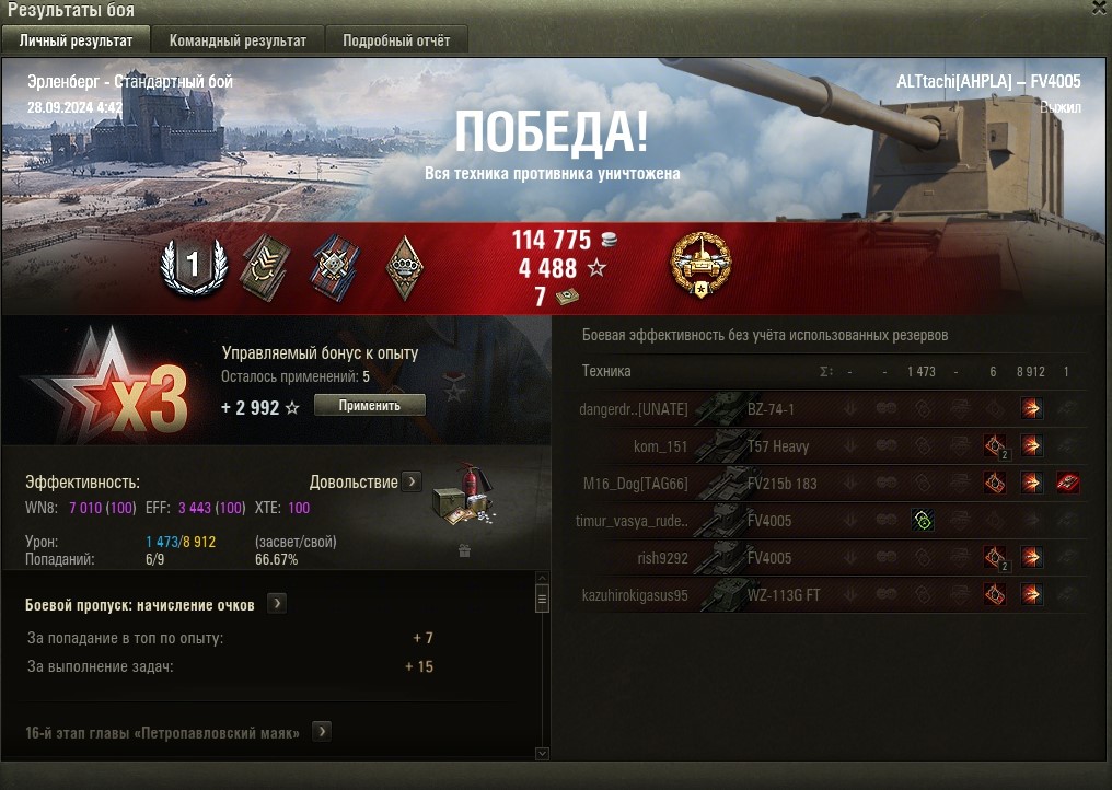 Обидно, что не хватило ещё одного пробития для заветных 10к урона за бой, но самое главное что выполнил ЛБЗ-15 компании Объект 260 :Smile_honoring: