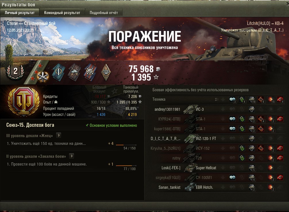 Нормально там Е75 в топ без арты на лучшую для неё карту закинуло - чисто переехал всю команду и дальше - в следующий бой (вообще не ощутил). Как говорится, мне бы так...
