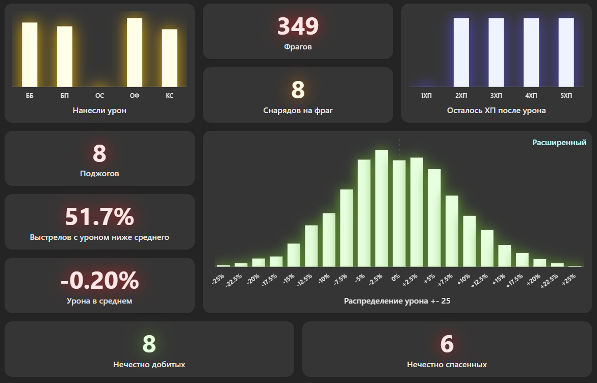 Shadowbeast Опубликовано: 5 марта, 2024 Игроки 17 911 публикация 100 746 боёв Поделиться Опубликовано: 5 марта, 2024 05 мар 2024 - 14:51 пользователь _KanuTaH_O4eBugHocTb_ сказал: Я правильно понял, что тебе откручивают больше, чем ему? Откручивают в чем? В уроне? Он так и плавает тудым сюдым. Но да, у меня больше выстрелов с пониженной альфой за 200+ боев. У него правда всего 27 боев что-ли. Ссылка на комментарий