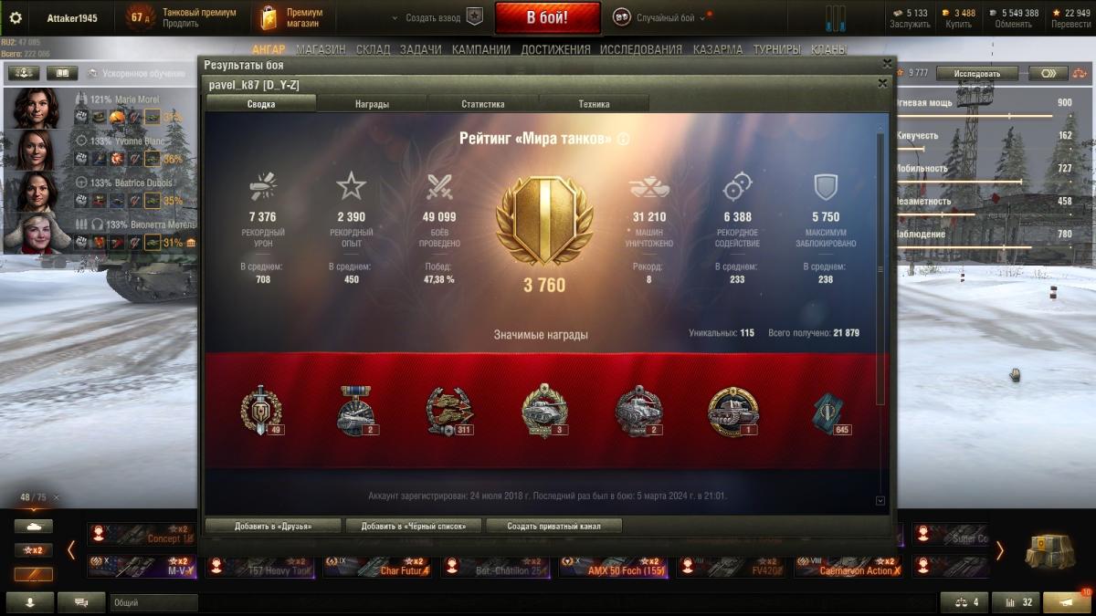 T0BAP0BED Опубликовано: 6 марта, 2024 Игроки 4 994 публикации 78 515 боёв Поделиться Опубликовано: 6 марта, 2024 06 мар 2024 - 01:08 пользователь RenamedUser__13454 сказал: Давно выгорел и не играю. Иногда захожу промониторить степень открутки. А вдруг отключили))) Но, чудес не бывает. Свежие скрины в студию!!! Все честно, откруток нет... А что там такого на твоих скринах открутошного? Ссылка на комментарий