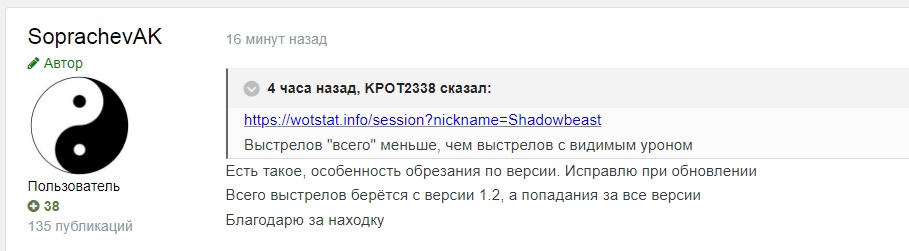 RenamedUser__13454 Опубликовано: 5 марта, 2024 Бета-тестеры 3 118 публикаций 47 437 боёв Поделиться Опубликовано: 5 марта, 2024 (изменено) 05 мар 2024 - 22:46 пользователь Viasat83 сказал: Последние 2 картинки - это топ инфа. Именно этого не хватает моду Сопрачева для полноты. Тогда вся инфа по работе балансера собирается в паззл. Ps: как ты вообще такой январь с августом выдержал? ты ж не человек. Давно выгорел и не играю. Иногда захожу промониторить степень открутки. А вдруг отключили))) Но, чудес не бывает. Свежие скрины в студию!!! Все честно, откруток нет... Изменено 5 марта, 2024 пользователем RenamedUser__13454 1 Закон статиста ВОТ: стой в кустах, прячься за своих, разменяй товарища, мешай дамажить, воруй фраги... Ссылка на комментарий