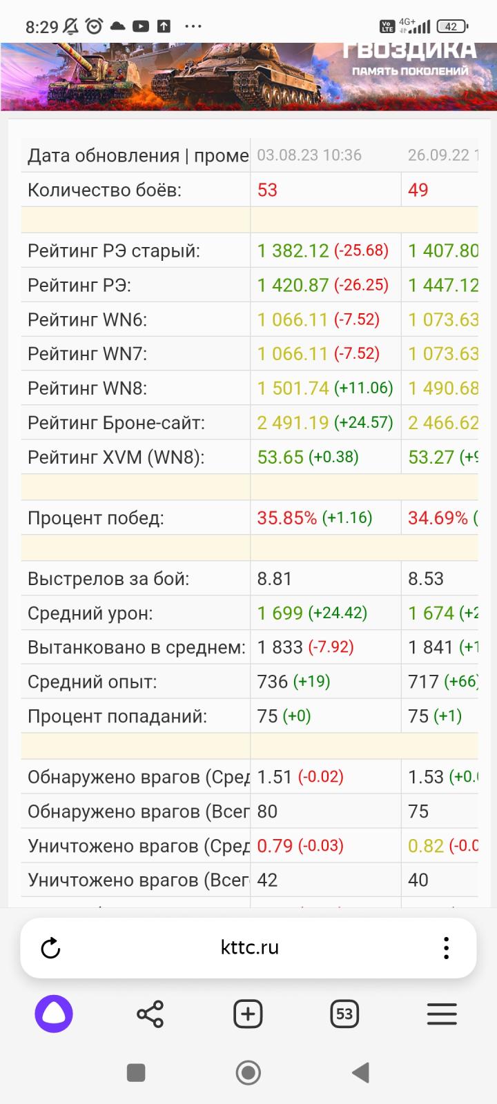 RenamedUser__13454 Опубликовано: 6 мая, 2024 Бета-тестеры 3 118 публикаций 47 437 боёв Поделиться Опубликовано: 6 мая, 2024 (изменено) 06 май 2024 - 22:21 пользователь Vladimir_02_18 сказал: 07 май 2024 - 00:52 пользователь RenamedUser__13454 сказал: Вероятность средняя проигрыша 14*15 50%-3%=47%. Т.е. при 41% играет "стабильно" 12*15, Очень честно звучит, определенно. А сессии в 25-16% ну прям сверх честный баланс. Такое "собрать" без знания скилов, на "случайно" не больше 1 на 50 боев. Патент идет в разнос, и урон не влияет (на предпоследнем скрине 83% при 0 урона) Смари скрин, могу даже репку скинуть. Как думаешь, я в том бою молодец, хорошо сыграл? http://tankireplays.lesta.ru/site/14533757 Прям странно, и почему же ты слил. Может потому что не смог настрелять 10000 рачила? Ведь твоя команда мертва априори. И ты уже изначально пытаешься как то выжить.В реплее много пробитий благодаря голде, без риска размена хп. Я не катаю фулголду. Возможно позже проведут тесты на голду. Изменено 6 мая, 2024 пользователем RenamedUser__13454 Закон статиста ВОТ: стой в кустах, прячься за своих, разменяй товарища, мешай дамажить, воруй фраги... Ссылка на комментарий
