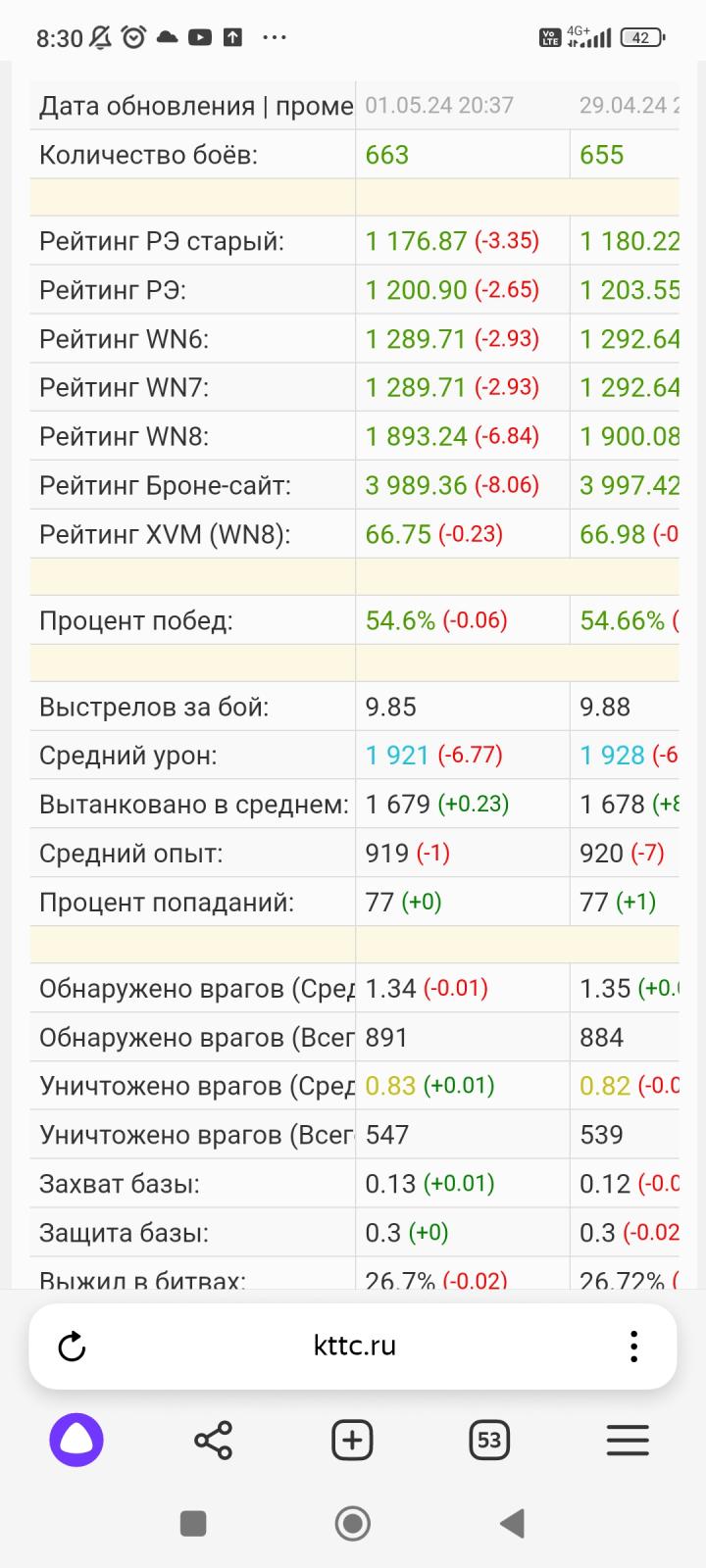 Viasat83 Опубликовано: 7 мая, 2024 Игроки 7 570 публикаций 26 767 боёв Поделиться Опубликовано: 7 мая, 2024 07 май 2024 - 01:07 пользователь Shadows_in_me сказал: Только есть нюанс - я своё мнение несу не как пруф. Ну и ладно. Я сразу оговорился, что это имхо. Мое мнение на основанно на аномалии в статистике. Пользователь сказал: Мне откуда знать, я же не сидел с тобой рядом во время игры. ну надо же. Оказывается фантазии не особо бьются с реальностью. А правда в том, что не было ни какой особой дизморали в январе. Не больше, чем в феврале, марте. Но тебе, то откуда знать... Пользователь сказал: почему именно в 2-3 раза больше? Чтобы ближе к твоим цифрам быть? А чем твои цифры лучше или показательнее моих, чем моё количество плохо? Конечно. Мои 500 боёв в январе статистически значимей, чем твои 100 в апреле. Пользователь сказал: Почему тебя не смущает, что ты в феврале сыграл в разы меньше, чем в январе? Ну так февраль близок к моему обычному месяцу на 300 боёв. Это не аргумент. Потому что есть статистика за 2023 год. И она близка к февралю. Пользователь сказал: И сравнивать такое тебе почему-то ничего не мешает А что должно мешать? У меня все месяцы в 23 году идут по 200-350 боёв. И нигде винрейт не опускался ниже 50%. А тут вдруг рухнул ниже 48%, при большем количестве боёв, что статистически значимей и при практически обычной эффективности. Это та самая аномалия. И мне ничто не мешает ее увидеть. В отличие от тебя, мой не замутненный "друг". Пользователь сказал: . А мне вот нельзя. Что за избирательность? Кто сказал , что нельзя? Я ничего не запрещал. Огни большого города мерцают Ссылка на комментарий