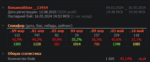 Shadows_in_me Опубликовано: 16 мая, 2024 Игроки 25 691 публикация 82 859 боёв Поделиться Опубликовано: 16 мая, 2024 16 май 2024 - 21:11 пользователь RenamedUser__13454 сказал: Зачем то кукарекают на каждый скрин, все про ошибки, дноскил и тд. Хотя средуха выше 51%, а победы 10-20%. Но сами боятся провести простой тест АФК - 50 боев и вычислить среднее "влияние команды". А это число будет базовым, указывающим есть открутка или нет, каково влияние команды, каково влияние 1 игрока. Если команды в балансе (без подкруток) то средняя 48-52%. Это математика... Потому и сцут протестить, что все станет очевидно с подкрутками. И команды "зеленые" и играют на 60% +3-5% ваших. Надо протестить, если взводом позовут, катану фулголду+паек на бате. Сравнить разницу средухи. Я провёл тест, и даже не по 50 боёв, а чуть побольше. Вот тебе результаты: . Можешь начинать вычислять. Ссылка на комментарий