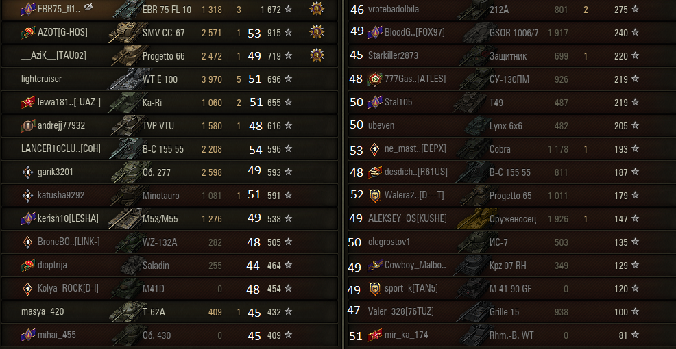 EBR75_fl10 Опубликовано: 21 мая, 2024 Игроки 18 380 публикаций 15 001 бой Поделиться Опубликовано: 21 мая, 2024 (изменено) Так, аналитики, просьба прокомментировать новый кейс 21 май 2024 - 12:24 пользователь EBR75_fl10 сказал: 21 май 2024 - 12:00 пользователь _BASCHNIA__88_ сказал: там фулл красная армия, а у вас наоборот. Хваставство подставным боем от Лесты и только. Именно за такой баланс уровня игры юзверей и сведение в команду обреченных - ругают эту контору. Заинтересовало, открыл стату каждого участника. Противники: средний процент побед 49.07 (округлял до целых) Союзники: без меня 48.93, со мной 50.1 При этом у противника в топе по процентам ст10 и кобра, а у нас арта с пт8 И что, вся подстава от лесты - не найти второго игрока в очереди 67% побед? Учитывая, что никто и не искал никогда... Если кому интересно, здесь процесс боя: Spoiler Изменено 21 мая, 2024 пользователем EBR75_fl10 Мой TELEGRAM: https://t.me/EBR75_fl10 (ССЫЛКА) Ссылка на комментарий