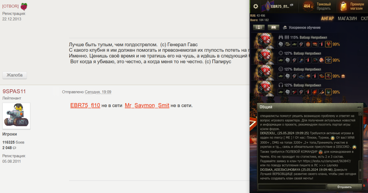 EBR75_fl10 Опубликовано: 25 мая, 2024 Игроки 18 380 публикаций 15 001 бой Поделиться Опубликовано: 25 мая, 2024 25 май 2024 - 19:09 пользователь 9SPAS11 сказал: EBR75_fl10 не в сети Mr_Saymon_Smit не в сети. Так пока не в друзьях, ты и не будешь видеть состояние.Просто шли приглос Мой TELEGRAM: https://t.me/EBR75_fl10 (ССЫЛКА) Ссылка на комментарий
