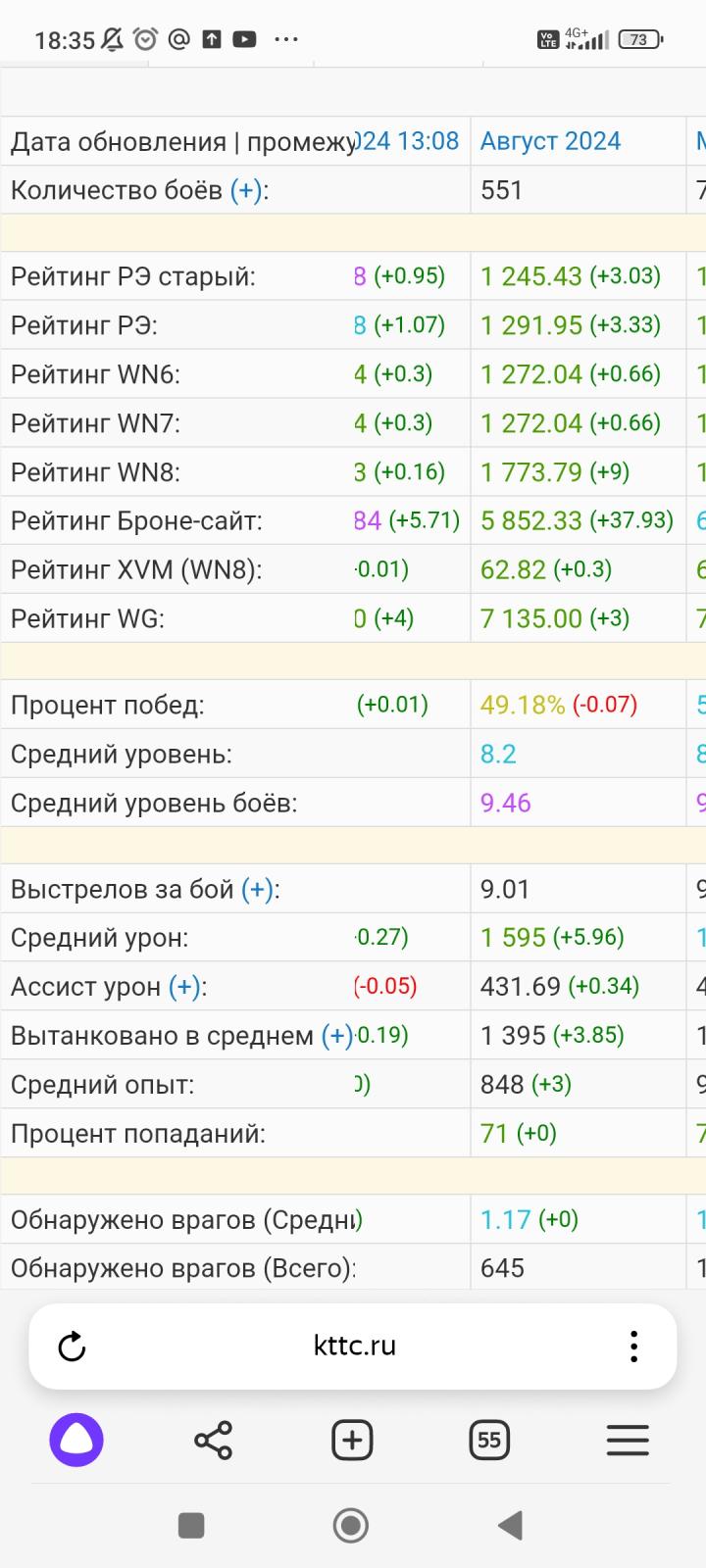 Shadows_in_me Опубликовано: 30 сентября, 2024 Игроки 25 577 публикаций 82 729 боёв Жалоба Поделиться Опубликовано: 30 сентября, 2024 (изменено) 30 сен 2024 - 16:40 пользователь Viasat83 сказал:Ну смотри какие интересные циферки есть за январь и август:https://forum-mt-prod.lesta.ru/monthly_09_2024/post-116899909-0-40636600-1727703359_thumb.jpg https://forum-mt-prod.lesta.ru/monthly_09_2024/post-116899909-0-00229100-1727703373_thumb.jpgВ норме за такую эффективность давали в р-не 53% винрейта, +-1-2%. Теперь чего то и 50 не выдают. Весьма странный рандом.А завтра нарисуется любопытная стата за сентябрь и по моим ощущениям, там очередная аномалия с винрейтом. 51,61% сейчас показывает рейтинг картохи. Что говорят твои ощущения по поводу такой аномалии? По поводу странностей не ко мне, это дизя тут критерии пруфовости определяет, все вопросы, претензии и замечания к нему. Изменено 30 сентября, 2024 пользователем Shadows_in_me Ссылка на комментарий Поделиться на других сайтах Другие способы поделиться...