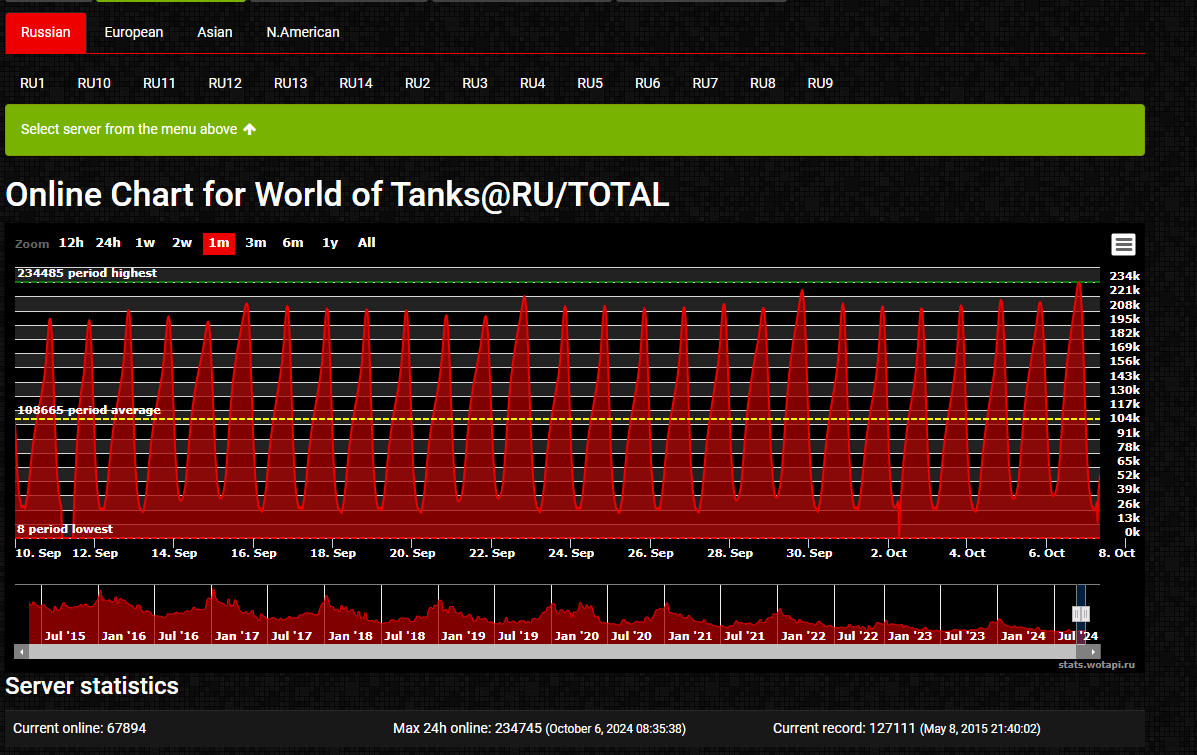 ermak_79 Опубликовано: 6 октября, 2024 Бета-тестеры 3 708 публикаций 46 191 бой Поделиться Опубликовано: 6 октября, 2024 06 окт 2024 - 20:49 пользователь T0BAP0BED сказал:лимон был на какое то событие, 100к сейчас в понедельник утром, норм так дед сравниваетпро 14 лет игре и раздел ру-кластера даже не говорюСейчас онлайн в пике ок 200к, год назад было ок 250 в октябре. Показательны будут декабрь-январь, в прошлом году в пике было ок 380к. Посмотрим, где-то в ноябре, по идее, леста должна запустить масштабный прогрев. Мое мнение - решения менеджмента стабильно отталкивают аудиторию. 2 Ссылка на комментарий