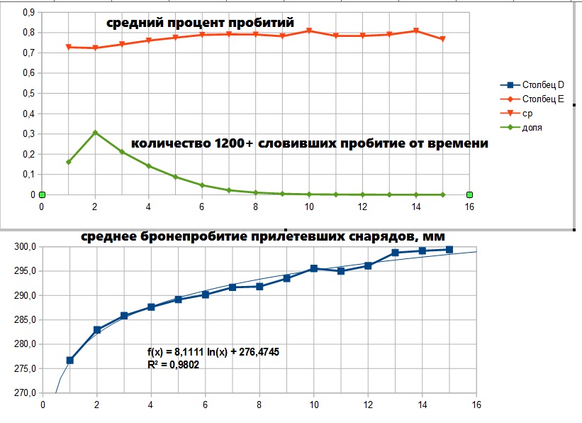 KPOT2338 Опубликовано: 8 октября, 2024 Игроки 21 666 публикаций 38 512 боёв Поделиться Опубликовано: 8 октября, 2024 08 окт 2024 - 06:23 пользователь Shadows_in_me сказал: А как рассчитывалось среднее бронепробитие? Ну и да, неплохо было бы разделить по типам снарядовavg(shellPiercingPower)Да вам одному надо по типам делить, другому не надо. Сразу не угадаешь.% пробитий и количество попаданий по Т-62 от времени боя(1 - на первой минуте, 8 - на восьмой)https://forum-mt-prod.lesta.ru/monthly_10_2024/post-7033054-0-42501800-1728361495_thumb.jpghttps://forum-mt-prod.lesta.ru/monthly_10_2024/post-7033054-0-10978500-1728361526_thumb.jpg Что не делается, всё к лучшему! (с) Cos 700=0.3420, Cos 850=0.0872Кто нибудь привяжите его руки к подлокотникам, и клавиатуру у него заберите. И вообще любое устройство с которого можно печатать. (с) kojot7Введите уже артприцел для всей техники Ссылка на комментарий