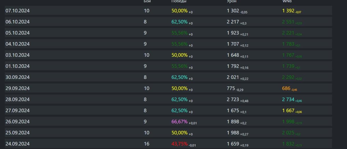 worster777 Опубликовано: 8 октября, 2024 Игроки 9 846 публикаций 35 233 боя Поделиться Опубликовано: 8 октября, 2024 08 окт 2024 - 12:46 пользователь T0BAP0BED сказал:подкруток нет, но почему то у меня красно-оранжевое войско, а у противника желто-зеленые опытные бойцыподкруток нет, чисто С Л У Ч А Й Н О, ага, верим https://forum-mt-prod.lesta.ru/monthly_10_2024/post-4676031-0-27742300-1728391548_thumb.jpg https://forum-mt-prod.lesta.ru/monthly_10_2024/post-4676031-0-97582500-1728391553_thumb.jpgА у меня сегодня "талантливые новички" через бой да каждый бой https://forum-mt-prod.lesta.ru/monthly_10_2024/post-6949781-0-30031000-1728393288_thumb.jpghttps://forum-mt-prod.lesta.ru/monthly_10_2024/post-6949781-0-15579200-1728393297_thumb.jpghttps://forum-mt-prod.lesta.ru/monthly_10_2024/post-6949781-0-74386100-1728393306_thumb.jpghttps://forum-mt-prod.lesta.ru/monthly_10_2024/post-6949781-0-02035400-1728393317_thumb.jpghttps://forum-mt-prod.lesta.ru/monthly_10_2024/post-6949781-0-95762600-1728393328_thumb.jpghttps://forum-mt-prod.lesta.ru/monthly_10_2024/post-6949781-0-04409100-1728393339_thumb.jpg Голда - это выдуманная проблема. Я, средний игрок, которых в нашей любимой игре 99%. С момента регистрации, на бебешках и без пайков, играл в 1700 среднего на десятках. Три года назад начал играть на фулфарше, результаты около 2200. Ну не такое сильное влияние голда оказывает на геймплей, а статисты и на бебешках будут делать такие же результаты, как и на фулголде. (с) gentleman_v_labserdakehttps://vkvideo.ru/v...56259581?t=4m0s Ссылка на комментарий