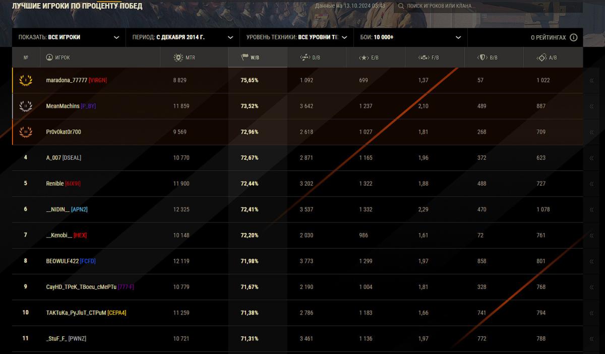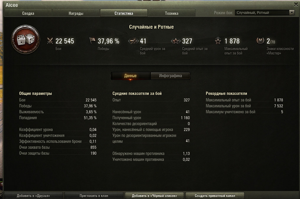 _DA_DOHAT Опубликовано: 13 октября, 2024 Игроки 1 548 публикаций 14 668 боёв Поделиться Опубликовано: 13 октября, 2024 13 окт 2024 - 17:58 пользователь zZzSacreDzZz сказал:Тогда приведите математическое обоснование, что для 15х15 такой разброс винрейта нормален. Т.е. ты не одной игрушки ПвП с такими же условиями как в World of Tanks не знаешь. И все твои ссылки на другие игры - это туфта? З.Ы. И не путай процент побед с рейтингом игроков. Рейтинг игроков в World of Tanks может различаться в три - пять раз RUTUBE: ловим рыбу, собираем грибы и учимся их готовить Ссылка на комментарий