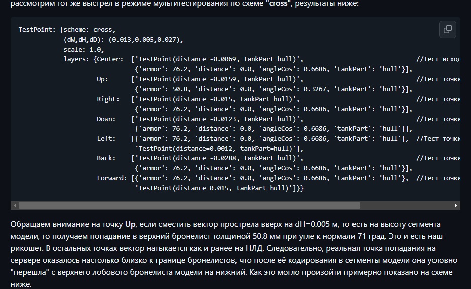 KPOT2338 Опубликовано: 23 ноября, 2024 Игроки 21 575 публикаций 38 512 боёв Поделиться Опубликовано: 23 ноября, 2024 (изменено) Мод показывает то, что приходит в клиент, а там дискретность в 1/256, то есть отклонение может быть в пару сантиметров, особенно сбокуЩа поищу подробнеез.ы.: Во чё нашёлhttps://forum-mt-prod.lesta.ru/monthly_11_2024/post-7033054-0-41031700-1732389072_thumb.jpgПри просмотре реплея на повышенной скорости координаты точки попадания могут отличатьсяUpd.:https://github.com/StranikS-Scan/StranikS_Scan-mods/wiki/Поиск-реальной-точки-попаданияhttps://forum-mt-prod.lesta.ru/monthly_11_2024/post-7033054-0-84642900-1732389480_thumb.jpg Изменено 23 ноября, 2024 пользователем KPOT2338 Что не делается, всё к лучшему! (с) Cos 700=0.3420, Cos 850=0.0872Кто нибудь привяжите его руки к подлокотникам, и клавиатуру у него заберите. И вообще любое устройство с которого можно печатать. (с) kojot7Введите уже артприцел для всей техники Ссылка на комментарий Поделиться на других сайтах Другие способы поделиться...