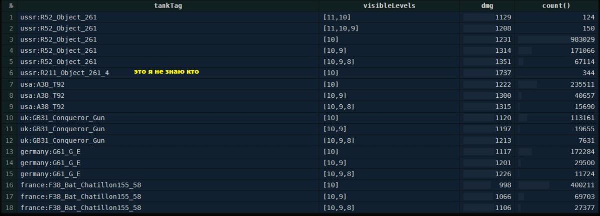 T0BAP0BED Опубликовано: 19 декабря, 2024 Игроки 4 994 публикации 78 013 боёв Жалоба Поделиться Опубликовано: 19 декабря, 2024 18 дек 2024 - 21:59 пользователь KPOT2338 сказал:Кто-то тут спрашивал про влияние уровня боя на средний урон (или что-то похожее)https://forum-mt-prod.lesta.ru/monthly_12_2024/post-7033054-0-48716400-1734548166_thumb.jpghttps://forum-mt-prod.lesta.ru/monthly_12_2024/post-7033054-0-43135100-1734548183_thumb.jpg - для ЛТ-10 и САУ-10 общееhttps://forum-mt-prod.lesta.ru/monthly_12_2024/post-7033054-0-99344800-1734548208_thumb.jpghttps://forum-mt-prod.lesta.ru/monthly_12_2024/post-7033054-0-18587800-1734548225_thumb.jpghttps://forum-mt-prod.lesta.ru/monthly_12_2024/post-7033054-0-88561000-1734548239_thumb.jpg - для одного ПТ, одного СТ и одного ТТ по игрокамз.ы.: урон - dmg, count - просто количество боёв я бы глянул на челов, делающих 5к+ Ссылка на комментарий Поделиться на других сайтах Другие способы поделиться...
