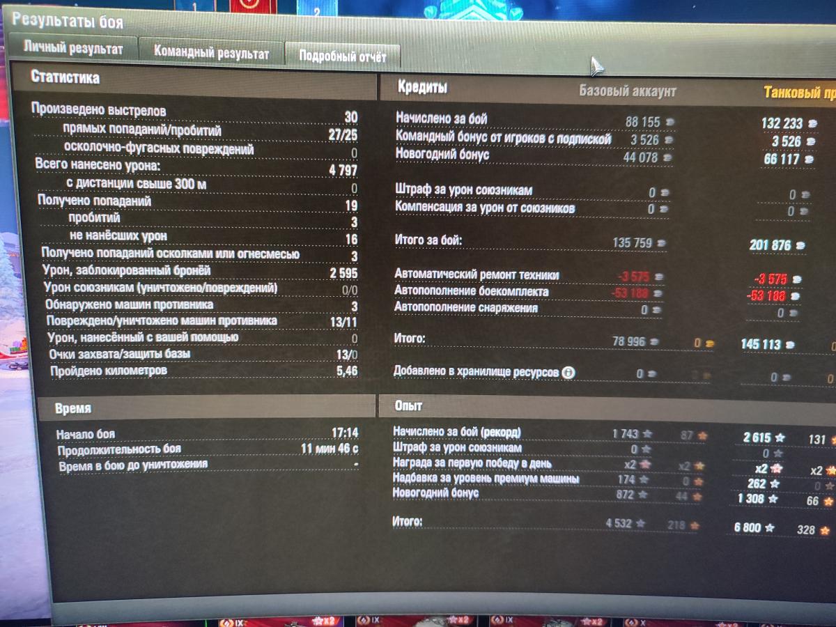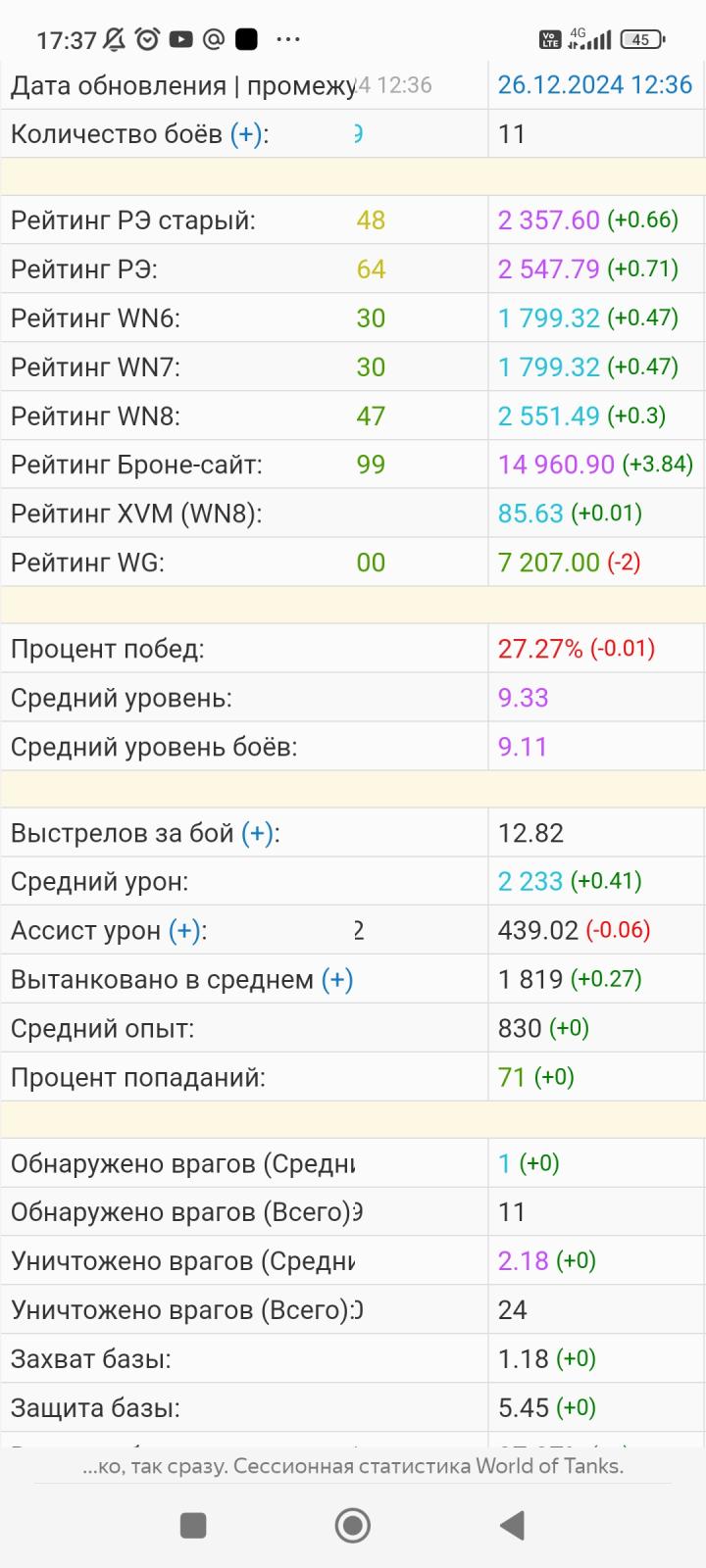 Viasat83 Опубликовано: 26 декабря, 2024 Игроки 7 570 публикаций 26 733 боя Поделиться Опубликовано: 26 декабря, 2024 25 дек 2024 - 15:08 пользователь Shadows_in_me сказал: Полагаю, ничего не узнаем. 11 боёв - моя рекордная серия. Ничего особенного.А вот, что действительно особое:https://forum-mt-prod.lesta.ru/monthly_12_2024/post-116899909-0-16311300-1735204681_thumb.jpgОдин день бирюза, другой красное. Подкруток конечно нет. Просто в один день кирпич падает на голову и на руки, а на другой совершенно другой человек садится за аккаунт. Верю... 2 Огни большого города мерцают Ссылка на комментарий Поделиться на других сайтах Другие способы поделиться...