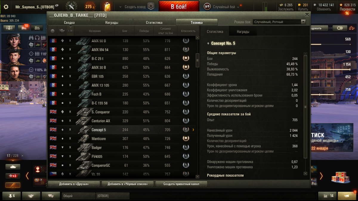 COCKU_CEMEHOBU4 Опубликовано: 29 декабря, 2024 Игроки 173 публикации 90 352 боя Поделиться Опубликовано: 29 декабря, 2024 (изменено) 29 дек 2024 - 21:28 пользователь EBR75_fl10 сказал: Ладно, окей, тебе нужна Подачка. Когда я говорил,Что не обязан с тобой меняться,Конечно, имелось в виду Не мое персональное решение,А то, что часть игроков принципиально,Как и я, играют до конца каждый бой,И вырывают победы "зубами". Как ты видишь механизм,Который должен мне помешатьОбыгрывать тебя за счёт моегоОпыта, настроя и доната?Ну так и я играю каждый бой и пытаюсь выгрызать. Расскажи как это часто делать когда у тебя остается 7 коцанных танков против фулкоманды противника 8 из 10 боев на второй минуте. А иногда тупо не успеваешь 2 барабан зарядить, когда уже окружен. Донат тут не причем. Механизм не знаю, вот и пытаюсь выяснить. Как тут некоторые пишут, возможно есть алгоритмы или скрипты. Кстати премак или трейд-ин, это донат? И да, если Сноуден доказал, что слежка ведется практически за всеми, почему игра не может отслеживать отдельного игрока? Изменено 29 декабря, 2024 пользователем __OJIEHb_B_TAHKE__ 2 Ссылка на комментарий