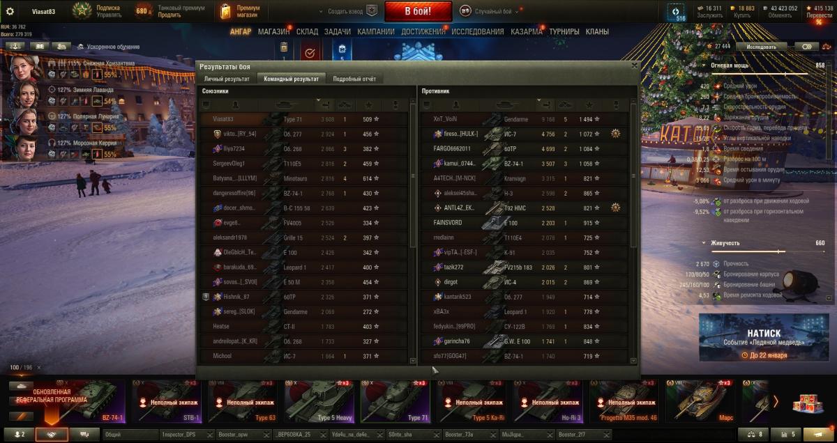 Viasat83 Опубликовано: 1 января, 2025 Игроки 7 570 публикаций 26 767 боёв Поделиться Опубликовано: 1 января, 2025 (изменено) 01 янв 2025 - 18:28 пользователь ermak_79 сказал:Почему не ошибался, ошибался, конечно. Просто иногда больше, иногда меньше.В плохом состоянии, конечно, не играю, но вот тебе самый простой пример: вечером после работы очевидно снижена концентрация и мозг медленнее соображает, отсюда менее эффективная игра бывает. Про концентрацию и внимание, это да. Соглашусь. Про работу мозга и интеллект. Не согласен. Танки игра не про интеллект. Я прям в разбитом состоянии играть не сяду. А в любом другом выдать 2-3 часа +- сконцентрированную сессию можно всегда. Тут , я честно, не очень понимаю о чем речь. Мы же не киберспорт. И если в других играх результаты стабильны, то в танках может колбасить совершенно неадекватно. И это нельзя объяснить какой то там особой случайностью. Здесь она носит паранормальный характер.Пользователь сказал: К слову, вчера была сессия 2/8 (2 победы 8 поражений) с мусорной эффективностью, в рандоме и моих командах творилась дичь, которая не улетит, потому что жареная Но я на это философски смотрю: вчера открутили, потом подкрутят) И тебе желаю так же относиться https://forum-mt-prod.lesta.ru/emoticons/Smile_blinky.gif Ну, во-первых, одна единственная сессия на 10 боёв эт мало. У меня так прошла большая часть месяца. Практически не вылазил из под угнетения. Во -вторых, я такой человек. С обостренным чувством справедливости. Я не могу такие вещи воспринимать спокойно и флегматично.Сытый, голодного не разумеет. Без обид. Но если бы у тебя было столько поражений, уверен, ты бы не смог сохранить бодрость духа. Эта забавная тенденция, она ведь не только случайные бои затронула. Я генералки выигрываю, в лучшем случае 1 из 4. Изменено 1 января, 2025 пользователем luxero исправил киберспорт Огни большого города мерцают Ссылка на комментарий