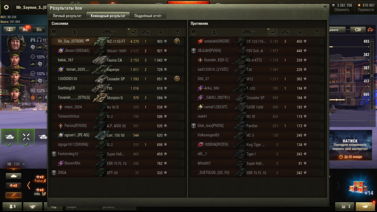 T0BAP0BED Опубликовано: 9 января, 2025 Игроки 4 994 публикации 78 523 боя Поделиться Опубликовано: 9 января, 2025 09 янв 2025 - 21:33 пользователь Mr_Saymon_Smit сказал:кто то из них толстый тролль,а остальные просто живут в неведении и думают,что тут всё серьезно и по настоящему) виасат норм типок- я бы давно играть бросил,чем так жить .на этой игре что свет клином сошелся или так на крючок он подсел,что соскочить не может? а виасат еще и банит тех,кто ему помочь пытается)подпишусь под каждым словом - обмякшие 09 янв 2025 - 21:38 пользователь Old_Pacifist сказал:Почему у тебя 60 ПП, а у меня 52?В прошлый раз ты мне не ответил. Вы с Сенокосом не в одном отделе работаете?его взводиком паровозили много, а так вся его соло скиллуха на скринах тайпа Ссылка на комментарий