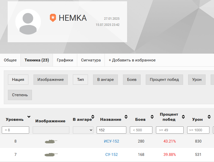 3metra_nad_yrovnem_dna Опубликовано: 16 июля, 2025 Игроки 4 026 публикаций 4 139 боёв Поделиться Опубликовано: 16 июля, 2025 14 июл 2025 - 12:03 пользователь 069_QWERTYUIOPASDFGHJKLZ сказал:Серия реплеев была выложена. Кто не успел посмотреть, тот опоздал. Выложил пока никого не было и потом удалил?Я вот не видел.14 июл 2025 - 13:48 пользователь HEMKA сказал:Не знаю, все как всегда Верно, как всегда показатели хуже некудаhttps://forum-mt-prod.lesta.ru/monthly_07_2025/post-34375601-0-51044600-1752650590_thumb.png14 июл 2025 - 16:07 пользователь HEMKA сказал:Это не ису) пробой 135) 175мм, ну это если есть хотя бы лишняя извилина в голове.14 июл 2025 - 16:10 пользователь HEMKA сказал:Спец. снаряды и автоприцел, убери это все, будет 38% 38-41% у тебя по причине того что у тебя на СУ-152 135мм пробитие и лично потому что ты необучаемая.И да, у меня в статистике есть Т-44 с 2011 года, тогда голда за реал была, и там статка на обычных снарядах.14 июл 2025 - 22:25 пользователь HEMKA сказал:СТ и ЛТ в 90% случаев переигрывают остальных, катаясь на автоприцеле, заставь этих игроков сводиться ручками, эффективность резко просядет. Надо пояснять? Типичное не знание механик, автоприцел не помогает выцеливать, а стреляя по некоторых танкам с экранами и фальшьбортами, ты вообще не будешь пробивать. 14 июл 2025 - 23:36 пользователь HEMKA сказал:всегда играла без лампы, подводка для нубов, это никогда не сделают, потому что засвет - это конмпенсатор скиловиков от случайного краха. За всё время нахождения на форуме, ты наверное в топ-5 нубов входишь.Так убого играть, это ещё постараться надо.Ах да, лампа сейчас у всех.14 июл 2025 - 23:38 пользователь HEMKA сказал:куча высосанных из пальца цветных параметров, основанных на приблизительных статистических данных, никак не переносящихся на разные карты и составы команд, верить им - себя не уважать. Куча объективных параметров которые зависят от игрока.14 июл 2025 - 23:59 пользователь HEMKA сказал:опыт большой, я не выхожу из боя, когда танк уничтожается, и вижу плавное слежение орудия при перевалке через препятствие. Это несложно заметить. У тебя опыт не используется, то есть считай его нету.15 июл 2025 - 08:41 пользователь Oneida сказал:Какой у Вас основной акк? Основной у меня на основе в подписи, но она его удалила. А так суммарно около 10 аккаунтов уже было/есть.На всех донные результаты. 2 Газопровод, нефтепровод Мы самый счастливый в мире народ Овощи хавают впитывают Слава Кремлю, Мир! Май! Труд! Ссылка на комментарий